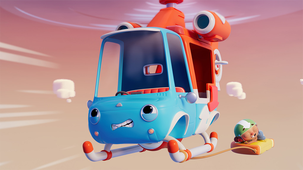 The playful quartet hear a honk honk in the distance as the Tubby Car approaches. The Tubby Car drives the Teletubbies across Teletubbyland as they sing the Tubby Car song