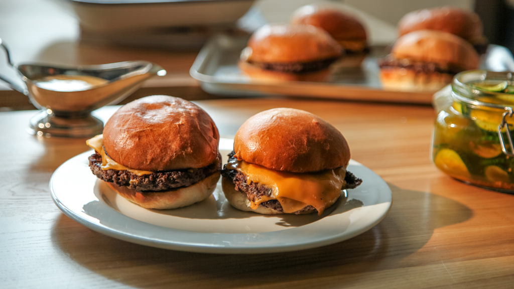 With crockery and lamps unpacked, Ravneet perfects raspberry soufflé while Mattie fires up the grill for burgers in their new kitchen