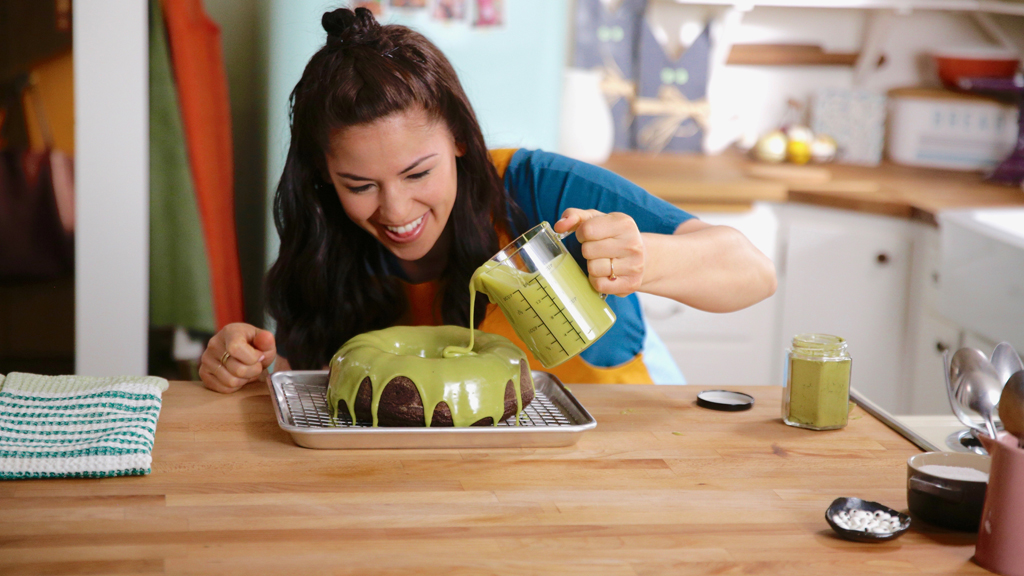 Molly Yeh hosts a Halloween-themed brunch with frighteningly good food. The spooky menu includes cyclops shakshuka focaccias and matcha macaroon monsters