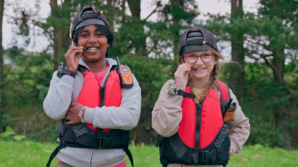 Srinika and Sophie learn more about water, meeting Ranger Hannah at a reservoir to collect a water sample to take back to the lab, where they can test it and make it safe to drink